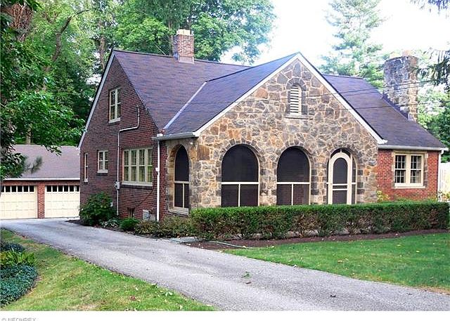 Rare opportunity in North Solon to live steps from the Metro Parks! Set back on a beautifully manicured treed lot with stone patio, this brick beauty has great "bones", and is much larger than it looks! As you enter through the screened in porch, the oversized arched dining room is to the left and an even larger living room with wall of windows, built in bookshelves and WBFP is to the right. Off the dining room is a large functional kitchen with loads of cupboards, counter space, eating area, 2 pantry closets, refrigerator, dishwasher and range. Flexible floor plan with 2 bedrooms and full bath on first floor, and 2 bedrooms + sitting area and full bath on second floor. Loads of closets including walk ins on both floors. Finished 30x15 recreation room with bar and second WBFP in full basement with additional storage. Room to add on another bay to current garage on either side. Roof in 2006 on house and garage-heated cables on house roof. Newer carpeting in some rooms. Laundry is currently in the basement but could be moved to first floor closet. Hardwood in first floor bedroom closets. Seller has spared no expense by getting a professional company to certify that the trees are healthy and have had any unhealthy trees removed. One year HSA warranty included. Great value!