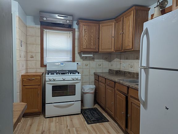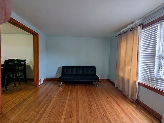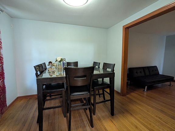 Opportunity Knocks! Charming 2BD/1BA Georgian-style brick single-family home featuring a separate dining room, a living room with hardwood floors in great condition, and a full basement awaiting your ideas. The property includes a newer large 2.5 car garage with dual garage doors, one of which opens to a huge patio/backyard-perfect for outdoor parties. Equipped with HVAC and central AC, this home is an excellent opportunity, better than a condo!
