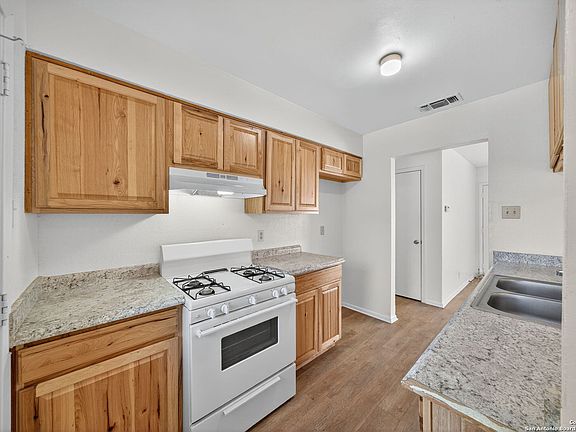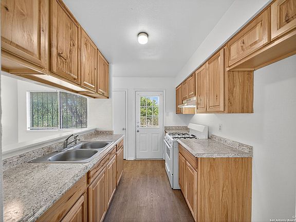 Step inside this charming one-story home and instantly feel at ease. The inviting living room welcomes you in and flows effortlessly into the open kitchen and dining areas, perfect for gathering with friends or enjoying a quiet evening meal. The updated kitchen features beautiful cabinetry and upgraded laminate countertops, offering both style and functionality for daily living. With no carpet in the main living spaces, cleaning is a breeze, while the bedrooms feature plush carpet for added warmth and comfort. Enjoy year-round comfort with ceiling fans throughout, and appreciate the convenience of an in-garage laundry area that keeps chores neatly tucked away. Step outside to a spacious backyard, ideal for weekend barbecues, pets, or creating your own garden retreat. A large patio provides the perfect spot for relaxing or entertaining outdoors. Move-in ready and full of potential, this home offers the perfect blend of comfort, functionality, and value in a welcoming neighborhood. Just minutes from your door are daily conveniences and lifestyle perks - groceries at H-E-B on Austin Highway make meal prep easy, while Kardon Park offers open lawns, walking trails, and picnic spaces for outdoor fun. Families will appreciate the nearby North East Independent School District campuses, rounding out a community-friendly setting that combines suburban comfort with city convenience. Come see why this home should be yours!