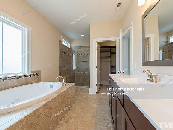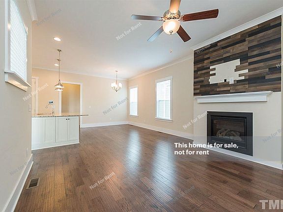 Built-in 2015, this Raleigh two-story offers a deck, a fireplace, granite kitchen countertops, and a two-car garage.