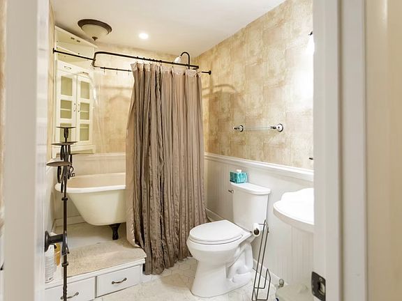 Amenities: private full bathroom featuring a claw-foot tub, secure digital lock