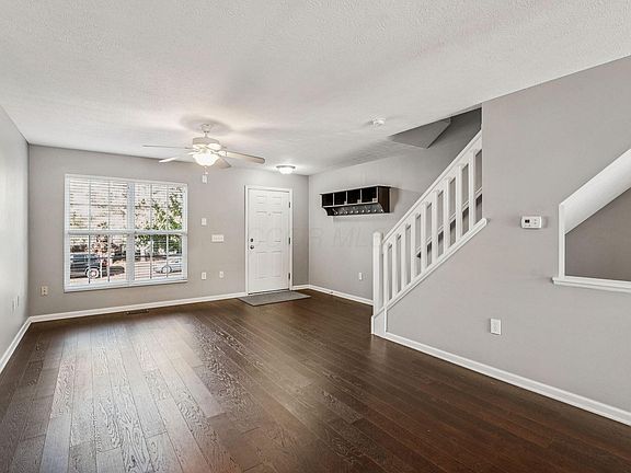 Step into this beautiful, move-in ready condo in the highly sought-after Falls at Hayden Run! Offering over 1,400 sq. ft. of stylish, functional living space, this home features an open-concept main floor with hardwood floors, a bright great room, and a kitchen with stainless steel appliances, white trim, and brushed nickel finishes. The finished lower level includes additional living space, a half bath, laundry area, and ample storage. Upstairs offers two spacious bedrooms and two full baths, including a large primary suite with a beautifully tiled walk-in shower. Enjoy a private back patio leading to your 1-car garage. Community amenities include a pool, fitness center, The Goat, and resident events. Prime location close to shopping, dining, parks, and major highways!