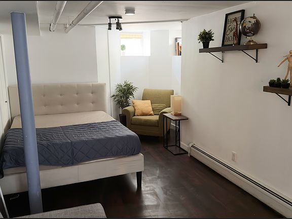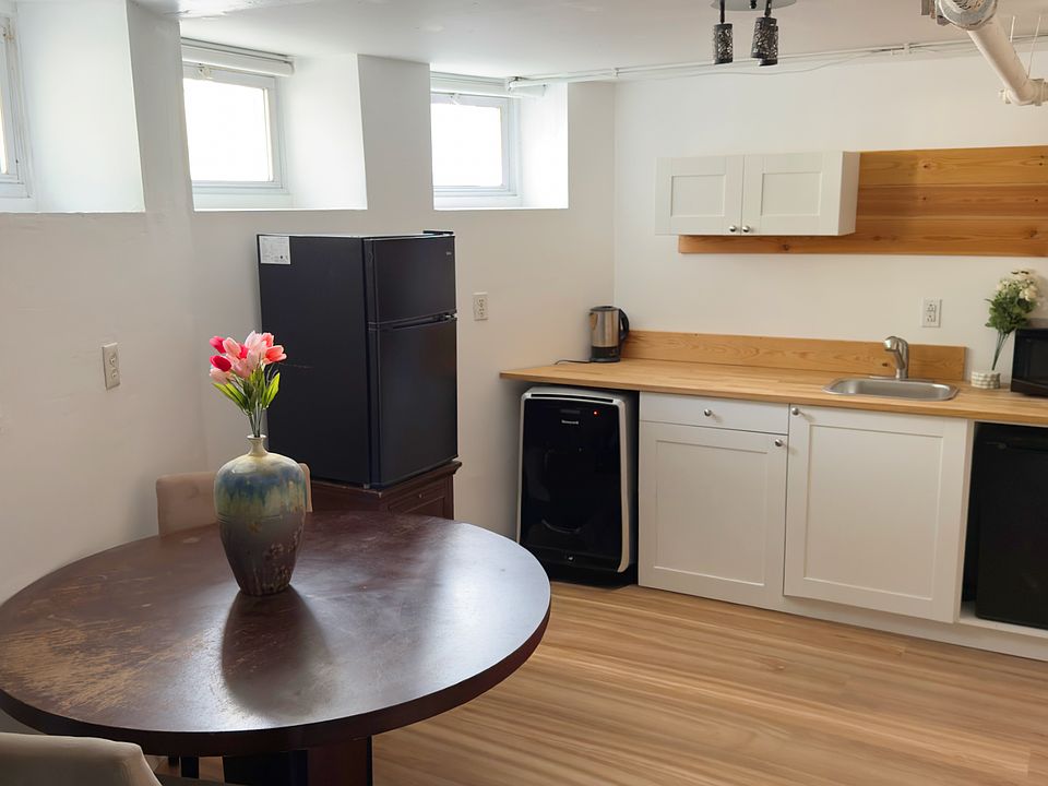 Cozy 400 sq. ft. Basement Studio with private entrance in a quiet residential area, steps from Boulevard East. Open layout.