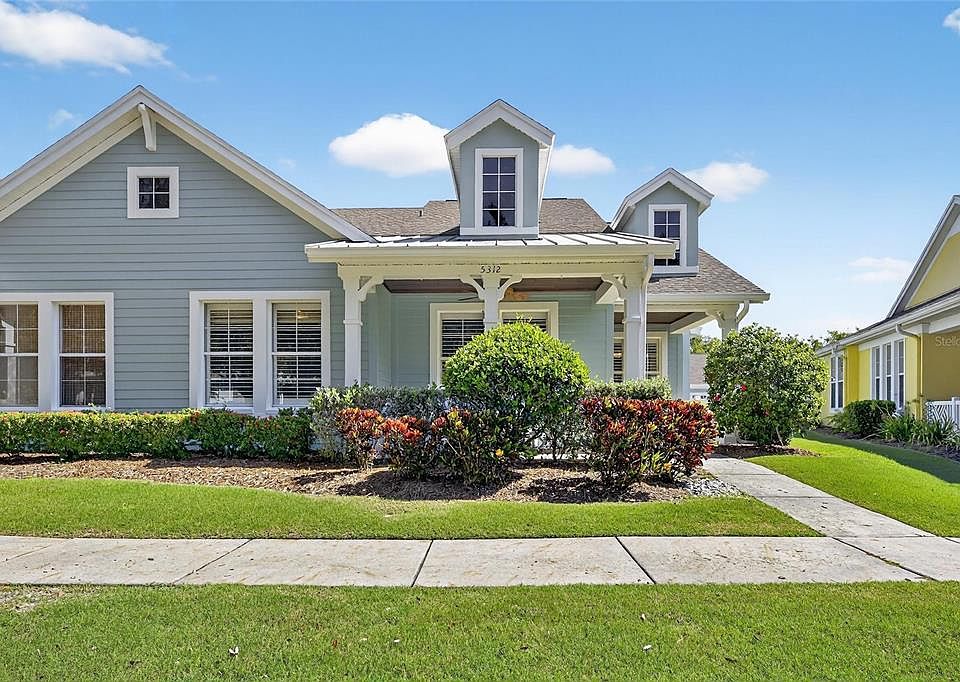 5312 Golden Isles Drive | 3 Beds | 2 Baths | 1,750 Sq Ft | Tidewater Floorplan | Park-Like Views | Villa in MiraBay This upgraded Tidewater villa offers 3 bedrooms, 2 bathrooms, a dedicated office with French doors, and 1,750 square feet of single-story living in the gated waterfront community of MiraBay. Located directly across from a peaceful, park-like green space, the charming front porch creates the perfect setting for relaxing or chatting with neighbors. Inside, you'll find crown molding in every room, hand-rubbed bronze hardware, a surround sound system, granite countertops, and 18-inch diagonal tile in the main areas. The kitchen is a showstopper, featuring 42-inch wood cabinets with crown and rope trim, stainless steel appliances, a gas range, and a double wall oven (including convection). The cozy breakfast nook offers views of the front porch and park. The primary suite includes a custom walk-in closet with built-in organizers and an en suite bath with pedestal sinks. The secondary bedroom is generously sized, and the office offers flexible space for work or guests. The rear-entry garage includes a laundry sink, and a large screened patio provides private outdoor living at the back of the home. Additional upgrades- new roof 2024, plantation shutter window treatments, built in glass display cabinetry, front and back entry ceiling custom woodwork. MiraBay residents enjoy resort-style amenities including year-round heated pools with lap lanes and a waterslide, a 24-hour fitness center, clubhouse with café and lounge, tennis, pickleball, basketball courts, parks, playgrounds, kayaking, paddleboarding, and miles of walking trails. The community is golf cart-friendly with backroad access to MiraBay Village’s dining, grocery, and retail options. Conveniently located between Tampa and Sarasota, this home offers a coastal lifestyle with easy access to airports, shopping, dining, and entertainment.