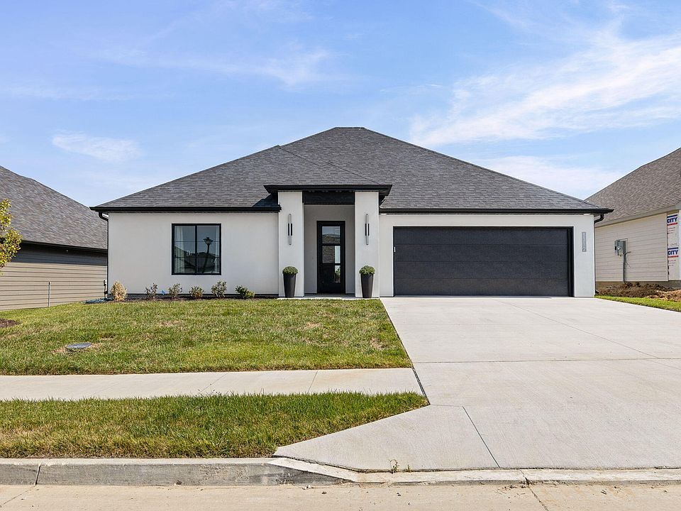 This thoughtfully designed 3 bedroom, 2 bathroom home packs high-end features into a smart, functional layout. From the formal entry to the spacious walk-in closets and pantry, every detail adds ease to daily living. The large kitchen island flows into the living and dining space, with an electric range, cozy fireplace, and 22' deep garage rounding out the interior. Step out to the covered patio and take in those beautiful Missouri evenings.
