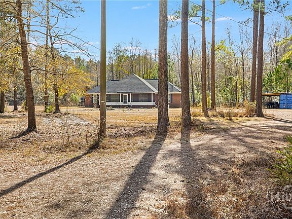 This beautiful one-story, all-brick home sits on over 5 acres and offers the perfect blend of comfort, functionality, and country living. A new roof (2025) and new HVAC to be installed prior to closing provide peace of mind for the next owner. Inside, you’ll find 3 bedrooms and 2 full bathrooms, with LVP flooring throughout—NO CARPET! Primary bedroom (approx. 540 square feet) plus an en suite bathroom with his and her closets, large tiled shower with dual showerheads. The spacious eat-in kitchen features an island and pantry and flows seamlessly into the great room with vaulted ceilings and brick fireplace. A 2022 appliance package, including washer and dryer, conveys. Grab your morning coffee and enjoy the peaceful sounds of nature from the spacious screened-in front porch. Two Connex containers with attached carports provide abundant storage, workshop space, or covered parking options. Short commute to Hyundai, Ft. Stewart and Savannah areas while still delivering privacy and room to roam. The livestock-friendly parcel is also ideal for hunters, farmers and outdoor enthusiasts. Schedule your showing today!