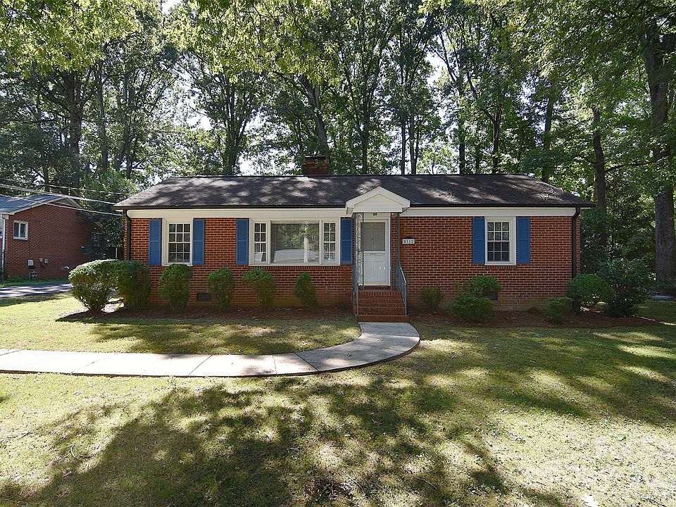This adorable brick ranch is in the established Royal Oaks neighborhood. Mature trees adorn the property as you drive up. Two car carport and additional parking on the paved driveway. Original wood floors adorn the living room as you enter. Living room is kissed with light by the large picture window and warmed in the winter with the gas fireplace. Dining room opens to kitchen and allows for seamless transitions at meal times. Bedrooms are large in size and share the full bathroom. Third bedroom feels nostalgic with the wood wrapped walls and built-in shelves perfect for a library display. Bathroom offers original cast-iron soaking tub with shower combo. Sunroom is a nice addition with the washer and dryer hook-ups and lovely view of mature back yard. Located in an up and coming area, this home is close to I-85, I-77, I-485, University Place, Northlake and so much more! Seller believes there may be an underground oil tank but has no other knowledge.