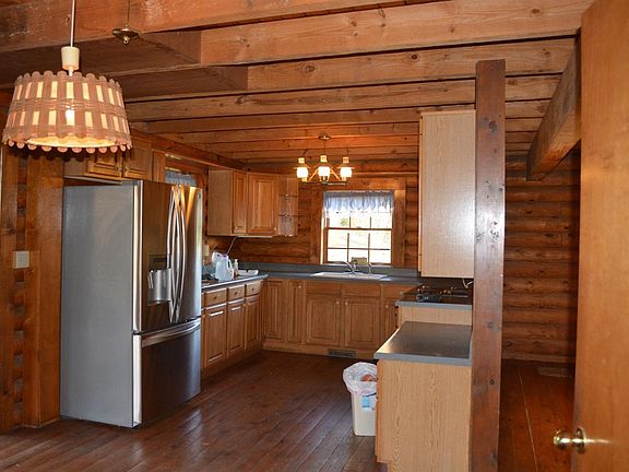 Charming log and cedar side home on 3 acres. If you're looking for country living with close conveniences, this is the property for you! Large (8' x 33') rocking chair front porch for relaxing and an amazing back porch (10' x 33') for entertaining! 3 BR's on second level include a master bedroom with walk-in closet, full bath and two additional bedrooms. Main level has living room with rock fireplace, galley kitchen with breakfast nook, formal dining room (can be 4th bedroom), full bath w/claw foot tub and laundry connections. Full unfinished basement with 10' x 24' exterior concrete pad, cabinets for storage and flue for wood stove. NEW ROOF, some new windows, refreshed interior paint. Large yard with circle drive, beautiful established perennials, green stone entry sidewalk, 14' x 10' utility building. Garden spot or use the raised beds already in place! You must see this amazing property! Pool/camping just 1/2 mile away (membership required).