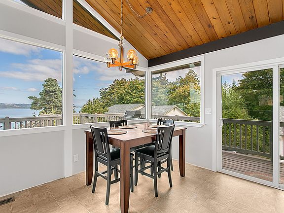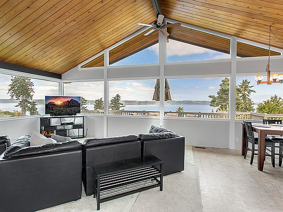 Dash Point, Panoramic views of the Sound and Mt. Baker pour into the great room through new windows. 5 bedrooms, 2.75 bath with new high efficiency heat pump, updated windows, new roof, and new deck offer solid bones for this Northwest Contemporary. Offers a true master bed, bath, and walk-in closet. 4 beds up and 1 bed down. Bonus rm in daylight basement. Permits ready for remodel to add garage and update throughout. Deck for entertaining and enjoying view. Fenced yard, private beach access.