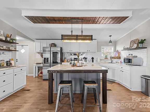 Prepare to be impressed by this beautifully renovated home! The meticulous updates and thoughtful touches shine throughout every room. Immaculately maintained, organized, and truly move-in ready, this home shows even better in person—though the photos speak for themselves. Enjoy an open floor plan with a stunning kitchen featuring pristine stainless-steel appliances, a spacious island, coffee bar, Subway tile backsplash, new lighting, and new 12mm laminate flooring that flows throughout the home. Also, notice the wood wrapped beam that adds character to the cathedral ceiling. Even small details like door hinges and knobs were replaced when redesigning the interior. Relax on the covered front and back porches, and appreciate the convenience of the washer and dryer conveying. The metal roof, both porches, water heater, appliances, flooring, plumbing hardware, lighting, interior paint, and concrete panel unpinning were all done in the summer of 2023. With 3 bedrooms, 2 bathrooms, 2 outbuilding, and a generous .44-acre lot—all with no city taxes—this property is a great value at $169,900. A must-see!