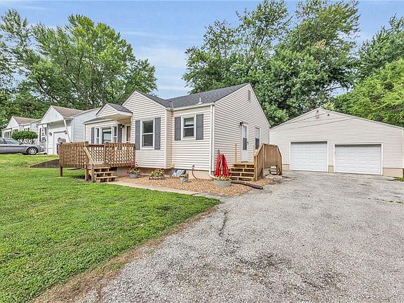 This remodeled home is nestled in Raytown Club Addition near Blue Ridge Boulevard. Stepping into the front door, you’re greeted by the naturally lit living room, with luxury tile floors that stretch into the updated kitchen. Stainless steel appliances are surrounded by ample cabinet space with granite counter tops and a classic subway tile backsplash. Both the primary and additional bedroom sit on opposite ends of the shared bath. You’ll find laundry in the unfinished basement, primed and ready to complete, with framing started for a non-conforming bedroom and even a half bath ready for updates. Just outside, the deep (80'x18') driveway leads to a detached, 30x30 foot shop that can comfortably fit 2 vehicles with plenty of space leftover for your workspace. Both doors are 104 inches wide, and are 94 and 83 inches tall. With sewer, water, and electric, you can even add a bathroom or auxiliary dwelling unit. There is also a separate parking pad for additional off-street parking. The large backyard is almost completely fenced in and ready for pets to play or to host a summer barbecue. Less than three miles from Kauffman and Arrowhead stadiums, and a quick drive from Heart of America public golf course!