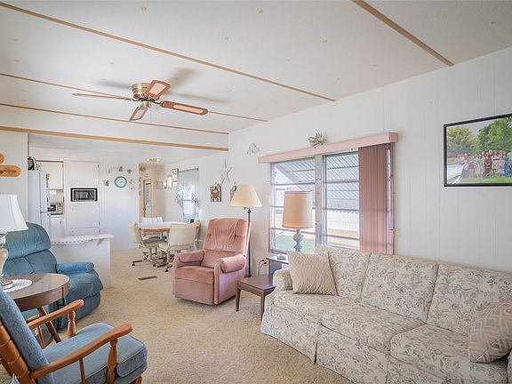 Welcome to this charming and well-maintained two-bedroom, one-and-a-half-bath mobile home nestled in the serene Oaks Royal neighborhood, a vibrant community designed for those aged 55 and over. This bright residence features an open-concept layout accentuated by white cabinets and light walls, creating an inviting atmosphere. The well-appointed kitchen includes a cozy eating area, while the split bedroom design ensures privacy for all. The primary bedroom boasts a private water closet with a single vanity sink for added convenience. Enjoy the comfort of carpet throughout and the added bonus of a separate flex Florida/sunroom, perfect for relaxation or entertaining. A single-car carport provides easy access, and residents can take advantage of the community pool, clubhouse, and shuffleboard courts. Conveniently located near shopping, restaurants, and excellent hospitals, this home is an ideal blend of comfort and community.