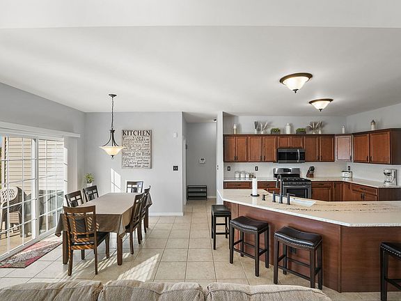 Motivated Seller.....Why build when you can move right into this like-new, beautifully maintained ranch in the desirable Wyndance subdivision? This open-concept home offers 4 bedrooms, 3 full baths, and a finished basement--providing nearly 3,600 square feet of comfortable living space. The main floor features a welcoming living room with double tray ceilings and a cozy gas fireplace, open to the dining area and stylish kitchen--perfect for entertaining. The kitchen includes Cambria quartz countertops, a pantry, and stainless steel appliances, with a bright breakfast nook that opens to the back patio. A finished laundry room with a utility sink adds convenience. Two main-level bedrooms share a full bath, while the spacious primary suite offers a private retreat with a soaking tub, separate shower, double vanity, private commode, and walk-in closet. The finished basement adds even more living space with a large recreation room, recessed lighting, a 4th bedroom or office, and a 3/4 bath. Located in the sought-after Crown Point school district and just minutes from shopping, dining, and major highways--this move-in ready home truly has it all. Schedule your private showing today!