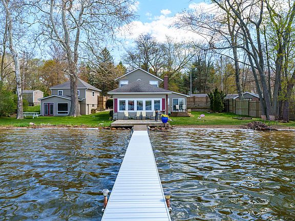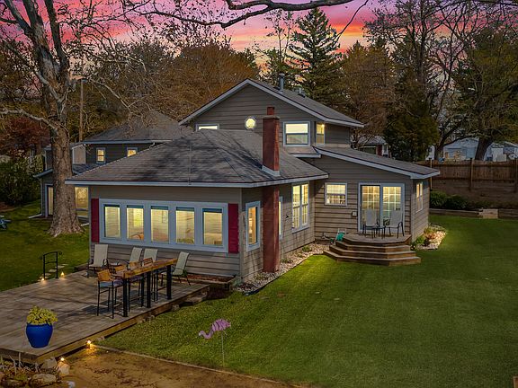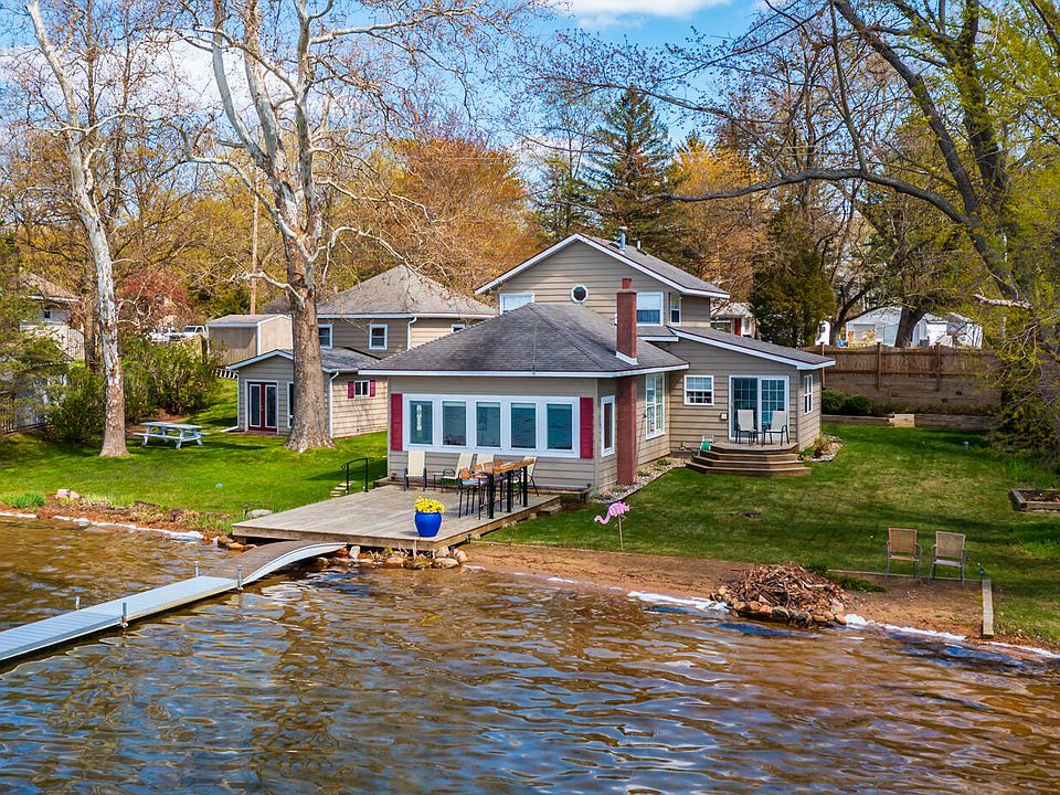 Welcome to this spectacular home on the 575-acre all sports Long Lake. With an impressive 145 ft. of sandy frontage, sunsets await you! With over 1,700 sq. ft. of finished space, this historic icehouse meets modern living. The fieldstone positively impacts the overall aesthetic, lending to it's quaint feel. Beyond the entryway, the home flows into a bright, open-concept kitchen, dining and living area. The kitchen is equipped with Kraftmaid slow close cabinets, Granite countertops and SS appliances. The main floor bedroom sits just off the living area and has a private deck. Lake views are visible from all rooms, especially the living room with cathedral ceilings. The upper level features the large primary suite with updated full bath and storage. Enjoy hosting friends on the huge deck with barbecues or behind the garage, enter the french doors to additional entertaining space/office. There is a workshop for the hobbyist or it can store all the lake toys. Admire the scenery, read a book on the paver patio, take a boat ride, fish or enjoy a day on the sand bar...lake life awaits! Call Laura to see this property today.