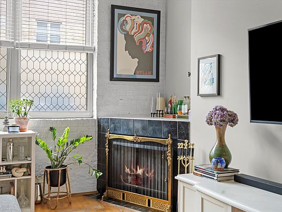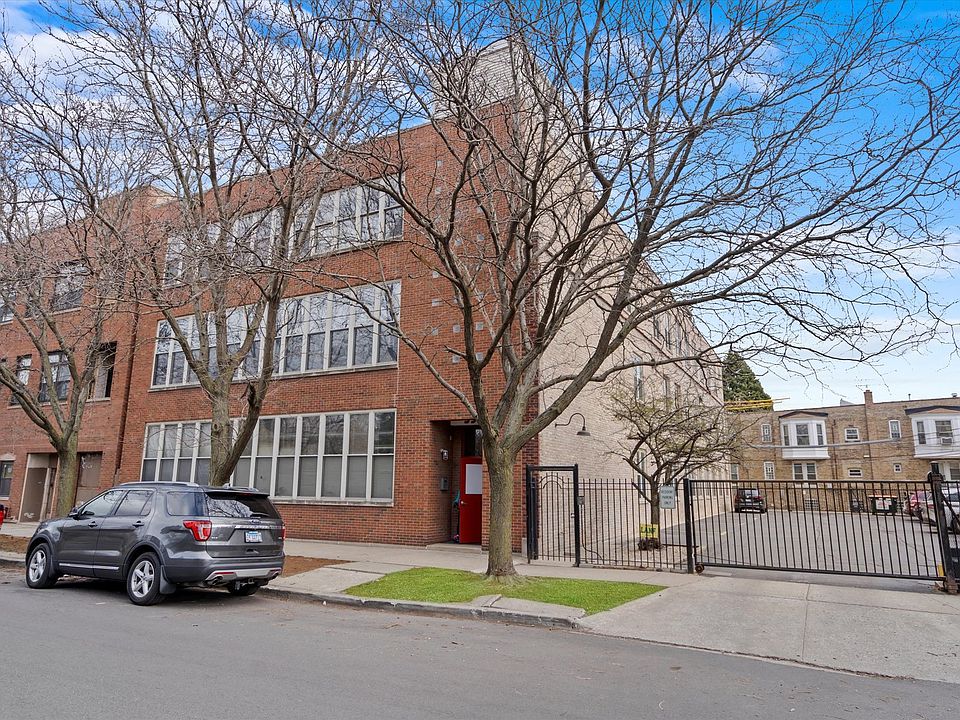 Stylish loft living awaits in this chic Andersonville concrete loft, nestled on a picturesque tree-lined street. Once an urban factory, this building has been transformed into desirable lofts! Flooded with natural light from its southern exposure, this sophisticated property seamlessly blends spaciousness with elegance. Step inside to discover a stunning interior featuring lofty 12 ft. ceilings, oversized windows framing scenic views, and a flowing floor plan that effortlessly connects each room. Hardwood floors, a cozy corner gas fireplace, and exposed brick walls add character and warmth to the space, offering the ideal backdrop for showcasing your art collection. The gourmet kitchen is a chef's delight, boasting sleek quartz countertops, a stylish island, tile backsplash, and stainless steel appliances. Entertain guests in the adjacent dining and living area. Retreat to the gracious primary suite, complete with a walk-in closet and a luxurious bath featuring a spacious tub for ultimate relaxation. The generous second bedroom offers ample storage with two additional closets. For outdoor enthusiasts, the rooftop deck provides a breathtaking panorama of the city skyline, perfect for enjoying al fresco gatherings or simply soaking in the views. This exceptional property also includes a secured parking space and a sizable 10 ft x 10 ft walk-in storage area conveniently located near the entrance. Located within close proximity to public transportation options including the EL and Metra, as well as a plethora of shopping and dining destinations, this unique residence offers the best of both Andersonville and Lincoln Square living. Don't miss your chance to experience the allure of this special neighborhood and distinctive building! Take a 3D Tour, CLICK on the 3D BUTTON & Walk Around.