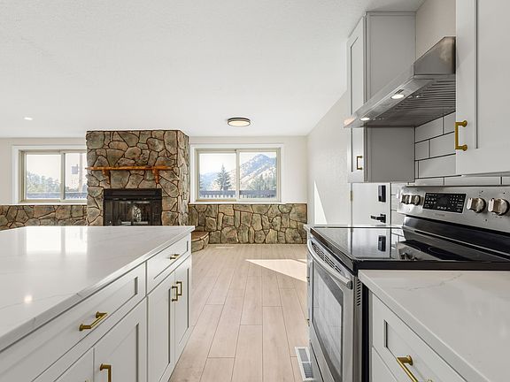 The open floor plan on the main level is filled with natural light and centered around a wood-burning fireplace, creating a warm and inviting space to gather year-round.