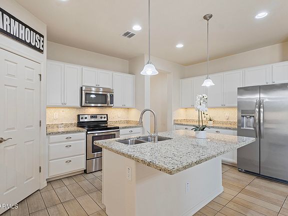 Located in the 55+ community of Encore at Eastmark, this Manhattan floor plan offers 2-bed + Den/Office, 2-bath home with 1,763 sqft of living space on an oversized 8,901 sqft lot. Inside, enjoy tile flooring with carpet in the bedrooms, granite countertops, and recessed lighting. The covered backyard patio provides the perfect space to relax or entertain. Encore at Eastmark offers endless opportunities for an active lifestyle, including a fitness center, weight room, pickleball and tennis courts, billiards room, bocce ball courts, a multi-purpose movement room, and vibrant arts and crafts groups.