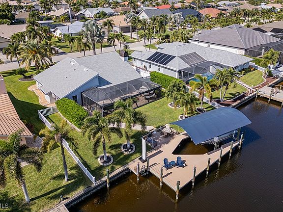 The outdoor space is what Florida living is all about! Enjoy a sparkling heated pool inside a picture-window screen enclosure (2021), and pavered lanai. The large DOCK AREA with Captain’s Walk includes a 12,000 lb lift with a BRAND-NEW Boat Canopy, and Deep-water Direct Sailboat Access! Just minutes to Cape Harbour & Tarpon Point for dining, shopping, and boating fun. Boat and furnishings are negotiable! This is the waterfront lifestyle everyone comes to Cape Coral for — don’t miss it!