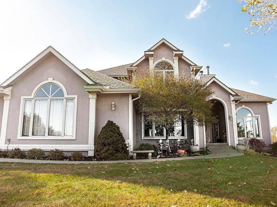 Beautiful custom built 6 bedroom house on 3+ acres with an incredible view! Plenty of space with just over 5000 sq ft. Main floor master with spa like master bath and a large walk in closet. High vaulted ceilings, walkout basement, main floor office, and a large rec room in the basement are some interior features. Outside you have a screened porch, new deck, covered patio, park-like yard, shed, and a 20x40 inground pool. 3 car attached garage & 2 car detached garage. Virtual tour available!