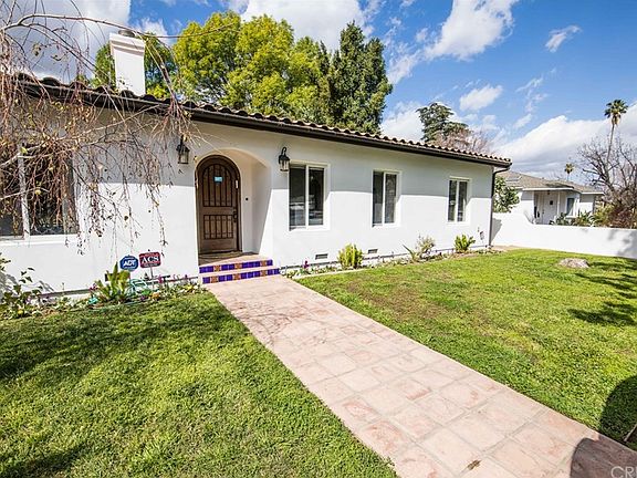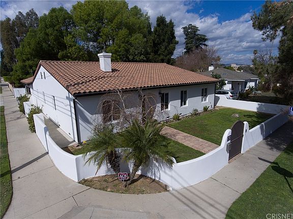 Welcome to this fabulous Spanish single level home on a sweeping corner lot in the heart of Tarzana within walking distance to two of the top distinguished LAUSD schools. This one features Saltillo tile floors throughout the 2100+ sqft of living area with four bedrooms and three baths. Incredible gourmet kitchen with over sized granite countered island, all stainless steel appliances, dual sinks, distressed stone back splash, and glass faced cabinetry. Plenty of room for eating area as well. Huge formal dining with gas fireplace and skylight. The grand living room features arched entries w/custom built-ins. Low voltage designer electrical fixtures. The great master features two huge closets with smoked glass doors, wood burning fireplace, and a resort styled bath featuring double sinks, and frame less shower, There is a small office off the master as well. Incredible stone and tile work through out especially in all baths...custom! The other bedrooms all are nice size and two include walk in closets. Ceiling fans in all bedrooms and living room. The outdoors are just amazing with tiled patio and in ground spa, turf, and privately enclosed. The property features a 16 cameras and a digital security system. Enjoy the surround sound throughout as well. All copper plumbing. A newer tiled roof. All window treatments on the over sized windows Baseboards through out. Direct access two car garage with laundry. The entire home was remodeled in 2007. Great detailing and design.