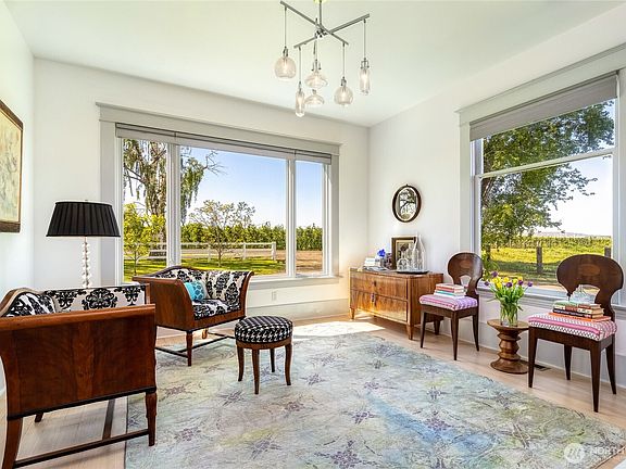 Stunningly reimagined wine country home in coveted Rocks District surrounded by vineyards & orchards-minutes to Walla Walla. Historic Pleasant Valley Ranch farmstead blends turn-of-the-century craftsmanship w/ bold, modern luxury. High ceilings, original wood floors, vintage pocket doors, detailed trims & wainscoting are complemented by high-end designer finishes. Light-filled master suite includes a loft retreat & stylish bathroom. Gourmet kitchen features custom cabinetry, Italian range & wine fridge. Property highlights; 3-bay shop, detached garage, horse pasture, fruit trees & gardens. From the wraparound porch to gabled balcony, every angle delivers panoramic mountain views & gorgeous Valley light. Breathtaking & uniquely exclusive.