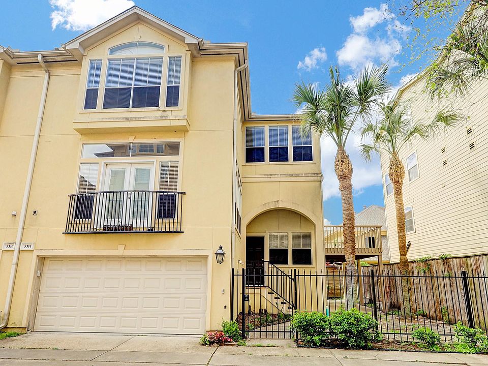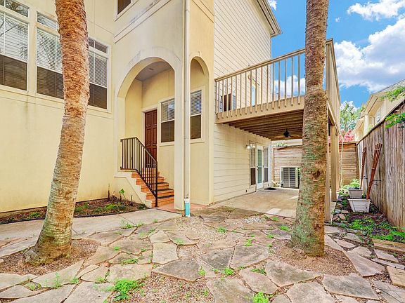 Nestled on the corner with a yard and spacious patio, this home features a welcoming front door and towering palm trees. The open floor plan on the second floor provides a great space for entertaining. The kitchen opens to the living room and dining areas that leads into the patio off the second floor. Secondary bedrooms are all on the first floor, with one opening up onto a covered deck area. The Primary bedroom is located upstairs, next to the laundry room and features a large en-suite bathroom with double sinks, private bathtub and separate shower. The best part of the Primary suite is the huge walk-in closet! You cannot beat this location with quick access to Memorial Park and the trails along the Buffalo Bayou.