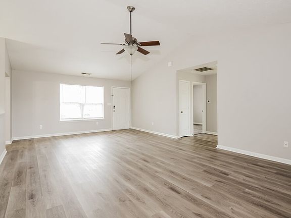 Welcome to this impressive single-story rental home on a serene cul-de-sac in Indianapolis. This move-in-ready abode features three bedrooms, two bathrooms, and an open floor plan with vaulted ceilings. The kitchen shines with quartz countertops, a full set of white appliances, including an above-range microwave, and elegant wood cabinetry. Enjoy the convenience of a laundry area behind a pair of doors in the kitchen. Vinyl plank flooring runs throughout the living room, and a light, neutral color scheme awaits your personal touch. The primary bedroom is a comfortable, calming space with a large window, a walk-in closet, and an en suite bathroom. Step outside to the patio for relaxation or entertaining, and benefit from the practicality of an attached two-car garage. Call to see this delightful rental home today!