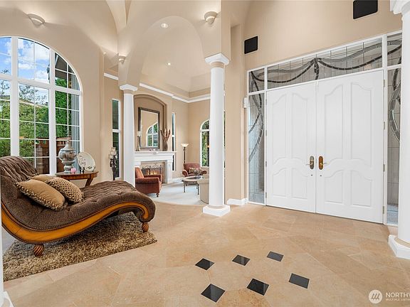 Welcome to this stately home tucked on a quiet cul-de-sac in Montreux/Lakemont. A stunning foyer with soaring ceilings, a curved staircase, walls of windows, and a music room set the tone. Flexible layout offers 4 bedrooms or 3 plus a large bonus room. The spa-inspired primary suite features a private balcony, double-sided fireplace, heated floors, a jacuzzi, and a walk-in shower. Outdoor living shines with an expansive flagstone patio, tranquil water feature, gas fire pit, and LED lighting. Additional highlights include exquisite architecture, a flat lot, a rare 3.5-car postless garage, three fireplaces, surround sound, and dual staircases. All just minutes to I-90, shopping, parks, trails, and top-rated Issaquah schools.