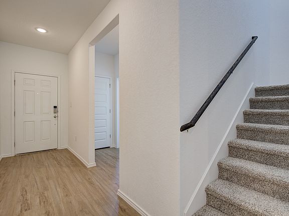 **42" White color kitchen cabinets, Quartz countertops, and Ivory colored tile back-splash, Upgraded stainless-steel gas range appliance package with range oven. Soft water loop upgrade, 6' sliding glass door to the Covered patio. Upgraded to include a full sprinkler system. Exceptional features include our Century Home Connect smart home package and more! Separate garden tub and shower Covered patio. Greenbelt NOTE: Construction on this home may not yet be complete. Photos are stock images; this home's selections may differ, see the sales associate for details. The beautiful McAllister plan offers two stories of inviting living space. On the first floor, a well-appointed kitchen with a corner pantry and center island overlooks a casual dining area, which flows into a large great room with access to an optional covered patio. Additional main-floor highlights include a convenient downstairs primary suite, boasting a private bathroom with a walk-in shower, water closet, duals sinks at the vanity and a generous walk-in closet. You'll find more versatile living spaces upstairs with a game room and two comfortable secondary bedrooms-one with a walk-in closet-that share access to a full hall bath.