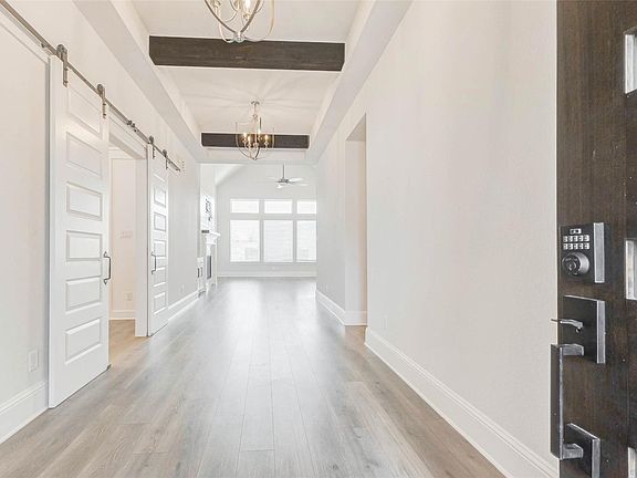 Welcome to 5314 Streamside Trail in Fulshear, TX, a stunning Drees Custom Home with 4 bedrooms, 4.5 bathrooms, and a 3-car garage. Inside, wood-look floors, designer paint, accent ceilings with beams, and elegant lighting create a warm and inviting atmosphere. The kitchen is a chef’s dream with abundant cabinetry that extends up to the ceilng, quartz counters, a large island with breakfast bar, stainless steel double ovens, built-in microwave, vent hood, and under-cabinet lighting. The open layout flows to the dining and living area that has a fireplace, media niche, and picture windows overlooking the covered patio and backyard. The primary suite offers a spa-like ensuite with dual vanities, a soaking tub, walk in shower and massive walk-in closet. Additional bedrooms each have ensuite bathrooms. Enjoy the game room, private study, and outdoor spaces that include a covered patio with built in bar and grill, hot tub, built-in fireplace, and greenspace.