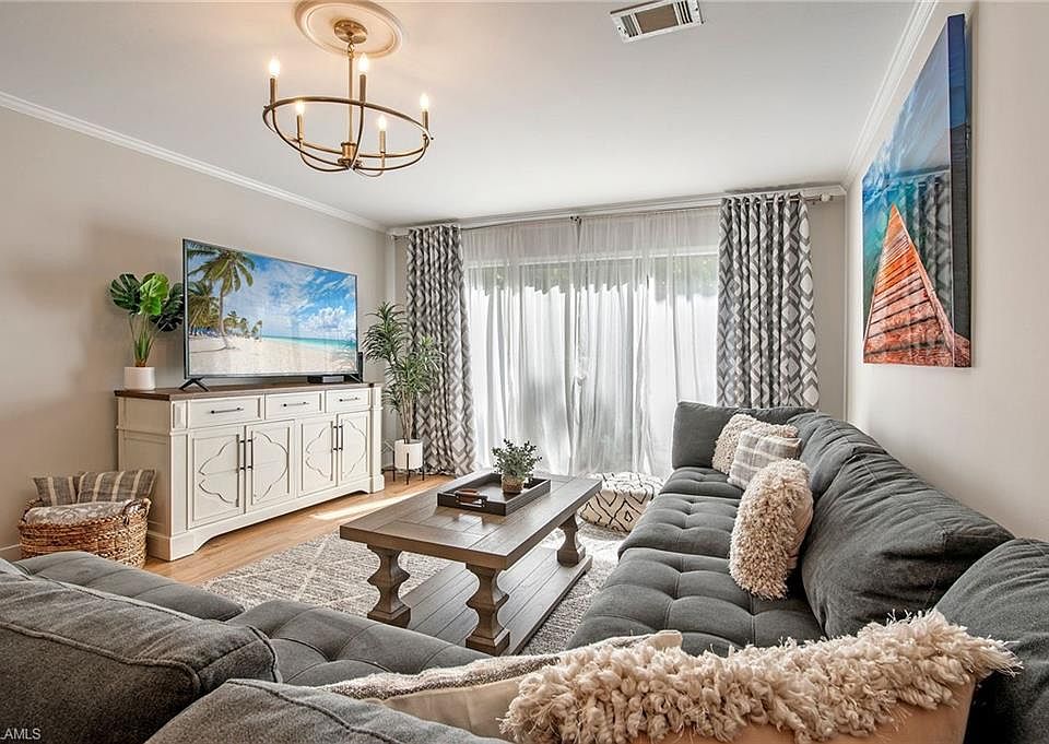 Hot hot hot!! GORGEOUS TURNKEY FURNISHED CONDO for rent for only $1,900 a month. BEAUTIFULLY REMODELED 2 bedrooms, 2 baths first floor condo in a quiet community with the heated pool in South Naples. Absolutely gorgeous decor. Recently remodeled with all new kitchen, bathrooms, new Samsung Washer and Dryer, new dishwasher, brand new a/c, new tile floors, new beautiful light fixtures. Kitchen is fully equipped with anything you might need to cook a gourmet meal. Spacious living room walks out to the patio. Your personal parking spot is right outside the front door. Woodgate at Naples is a low-density complex with a very convenient location close to everything Southwest Florida has to offer. Only 15 minutes away from the Naples Pier, 5th Avenue and Downtown Naples with lots of fun and activities, very close to Eagle Lakes Community Park that includes an Aquatic Center, Nature and Walking Trails, Lighted Baseball, Basketball, Softball, Football, and Soccer Fields, Picnic Shelter, Playground, and Fitness Center. Close to dining, shopping, golf, recreation, and entertainment.