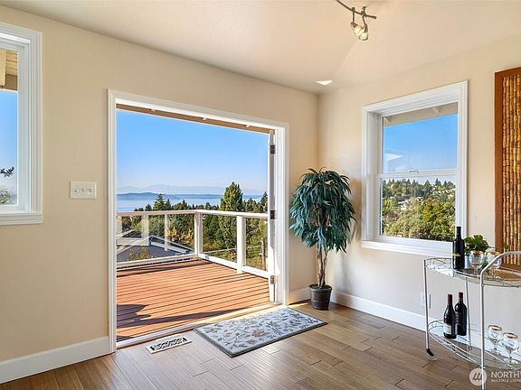 Seaview stunner with views from every floor of the house. Walk into the main floor that was made for entertaining with a wall of windows to capture the incredible views. The large open kitchen with bar seating adjoins the dining area with the double-sided fireplace all steps away from the french doors and large deck. Kitchen also offfers dual fuel range. Upstairs, take in the views from the primary suite with 3/4 bath. Upstairs has a flex room that has potential for 3rd bedroom/playroom or office? . Downstairs is where the potential is. Open view basement with walk out door leading to patio with views, great for extra rooms or MIL? Wonderfully located close to The Junction or walk down to the beach.
