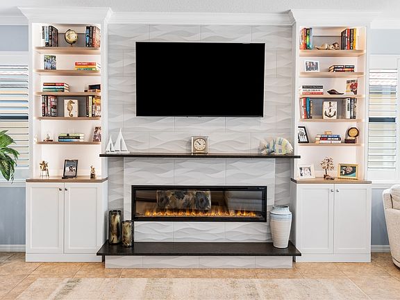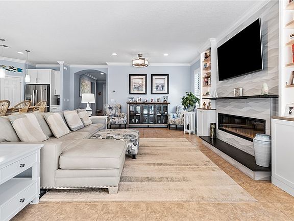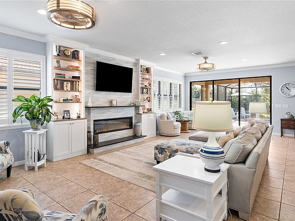 Extended covered lanaiSpacious island kitchenTile flooringCrown moldingOverlooking the heated poolUpgraded cabinetry