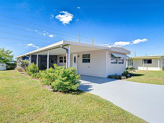 Oaks Royal I & II is a 55+ (age-restricted) community located just west of Zephyrhills, Florida. It is deed-restricted, meaning that there are covenants/rules that homeowners must abide by. The park offers amenities such as a pool, clubhouse with lots of social activities, shuffleboard courts, and horseshoes. This home offers an open floor plan, 2 bedrooms, and 1 bath. The home sits on an oversized lot. There is large screen room and laundry room for additional storage. Upgrades to this home include all new double pane windows, Siding, Rebuilt AC compressor, and upgraded plumbing. This home is meticulously maintained. Call today to schedule your tour!