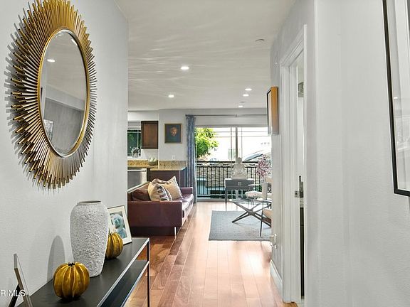 Experience Luxurious Modern Living in a Zen Retreat at Village Commons Discover the perfect blend of elegance and tranquility in this beautiful 2-bedroom, 1.5-bath condominium located in the desirable Village Commons complex in Valley Village. Built in 2011, this 1,150 sq. ft. home has been transformed into a calming retreat with designer touches that exude sophistication and serenity. As you enter, you'll be greeted by rich hardwood flooring throughout, recessed lighting, and an open floor plan ideal for both relaxation and entertaining. The living and dining space flow seamlessly, enhanced by stunning high-end wallpaper, beautiful chandelier and custom window treatments that elevate the ambiance. The spacious kitchen features stainless steel appliances, sleek granite countertops, and cabinetry in rich wood tones that combine beauty and functionality. Both the primary and guest bedrooms are spacious and inviting, with hardwood floors continuing to provide a clean and modern look. The primary bath boasts a shower/tub combination and plenty of storage, while the in-unit washer and dryer add convenience. Step onto the private balcony to take in the peaceful, tree-lined surroundings that create a soothing connection to nature. The property's serene vibe is complemented by building amenities, including a secure entry, 2-car tandem parking, and a community club room. With earthquake insurance included in the HOA, this home is as practical as it is beautiful. Located minutes from vibrant shopping and dining, Universal Studios Hollywood, and Sherman Oaks Galleria, you'll enjoy both urban convenience and a private oasis.
