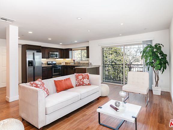 Tranquility greets you the moment you enter this beautiful, one-level, 2-bed/1.5 bath top-floor condo. The large, open-concept kitchen, living and dining room is perfect for entertaining. Gourmet kitchen features granite countertops, stainless steel appliances and rich wooden cabinetry with soft-close drawers. Light and bright, with plenty of privacy, this unit wows with its mountain and treetop views. Two amply sized bedrooms share a large full bathroom. Additional half bathroom off the main living area. Other features include hardwood floors and recessed lighting throughout; plenty of storage, stackable washer/dryer in-unit, and tankless water heater. Gated underground parking with 2 tandem spots. Building has a clubhouse, as well as guest parking. Conveniently located on a quiet street with easy proximity to Metro Orange Line, 170 Freeway, the coming soon NOHO West, NoHo Arts District, and the Studio City, Burbank Studios.