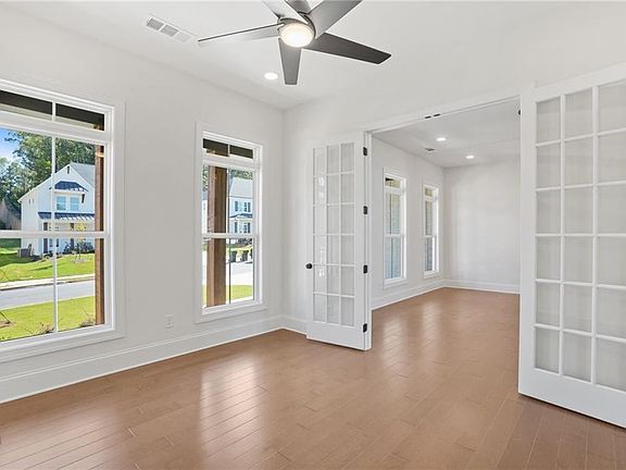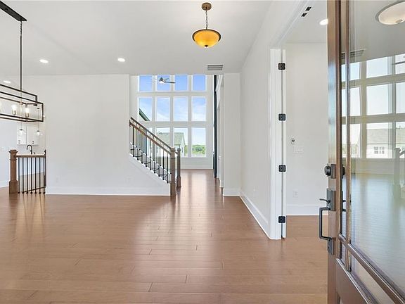 MOVE-IN READY! Discover modern luxury and everyday comfort in this beautifully designed Antioch model with the Modern Farmhouse elevation, featuring five bedrooms and five-and-a-half baths. This east-facing home, located in the highly desirable Chimney Creek community, combines elevated design, open-concept living, and exceptional craftsmanship throughout. The gourmet kitchen features upgraded cabinets, quartz countertops and island, a butler’s pantry, and a spacious walk-in pantry. High-end stainless steel appliances, including a double oven, make it perfect for both family meals and elegant entertaining. The living room showcases soaring ceilings, a floor-to-ceiling tile fireplace, and custom built-in bookshelves and cabinetry that add warmth and character. No carpets—only upgraded hardwood flooring throughout—enhances the home’s modern feel and easy maintenance. The primary suite offers a serene retreat with a spa-inspired bath featuring an additional rain shower, bathtub, and a generous walk-in closet. Every secondary bedroom includes its own full bathroom with upgraded fixtures and custom cabinetry. The laundry room includes additional built-in cabinets for extra storage and organization. The main level also includes a private office with glass doors, a mudroom, and a convenient guest bedroom with a full bath. Elegant upgraded lighting fixtures, Alexa-operated blinds, and large windows create a bright, connected atmosphere with excellent ventilation and natural light. An open hardwood staircase to the basement leads to the unfinished lower level, offering potential for future customization. While the basement itself remains a blank canvas, the finished stairway provides easy access and a touch of elegance from the main level. Outside, a covered living area and welcoming front porch overlook a flat, usable backyard—perfect for relaxing mornings or hosting gatherings. In addition to the sale price, the home includes approximately $35,000 in builder-provided incentives, which have been thoughtfully applied toward premium upgrades throughout the property. This home is located in the top-rated West Forsyth school district, offering access to excellent educational opportunities for families. It has also been professionally inspected by private inspectors both before drywall installation and prior to closing, ensuring quality and peace of mind. Located in Chimney Creek, one of the area’s most sought-after neighborhoods, residents enjoy resort-style amenities including a swimming pool, tennis and pickleball courts, cabana, and scenic walking trails. The community is conveniently close to top-rated schools, shopping, dining, and major commuter routes. This Antioch Modern Farmhouse perfectly blends sophistication, functionality, and comfort—offering the ideal setting for modern family living.