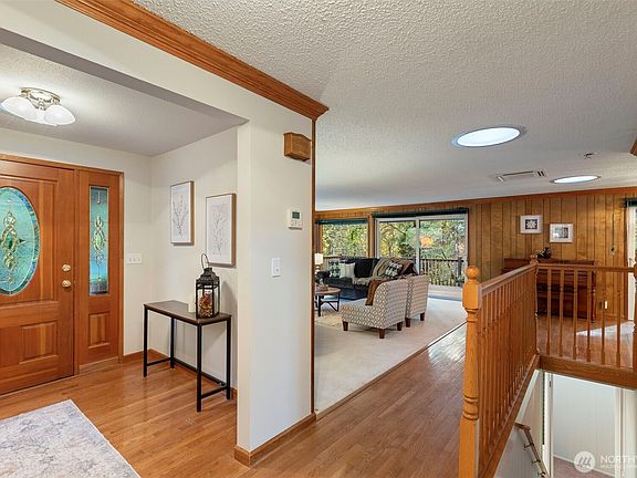 Nestled among old-growth cedars on 3.67 acres, you'll fall in love with this well-maintained estate. Great retro vibe or some interior cosmetic updates will make this diamond shine! Featuring a newer roof, hot water tank, windows, paint, heat pump & hard-wired generator. Hobbyists will love the oversized 2-car detached garage/shop and RV parking. Main floor living with gleaming hardwood floors, gourmet appliances and a cozy gas fireplace. Primary suite with dual closets, sitting room/office, walk-in tub & updated shower. Enjoy seasonal sound views from your hot tub deck! 2 additional downstairs beds with Jack & Jill bath, gym, & huge craft room offers flex space for guests or multi-gen living. Minutes to Key Center & Gig Harbor amenities!