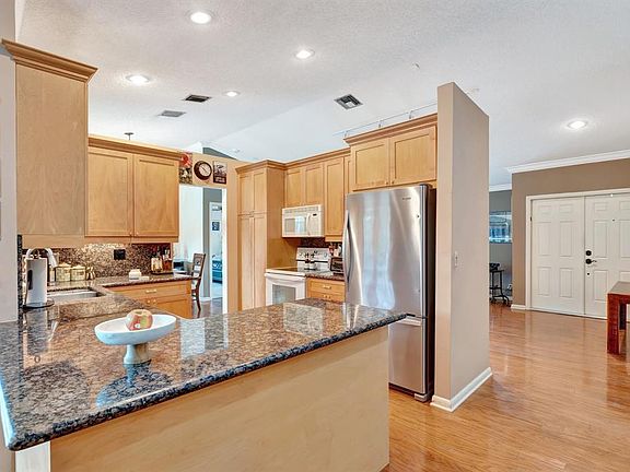 BEAUTIFUL 4/2 POOL HOME IS NESTLED ON A QUIET OVERSIZED CUL-DE-SAC AND OFFERS THE PERFECT BLEND OF STYLE & FUNCTIONALITY. FULLY IMPACT WINDOWS & DOORS FOR STORM PROTECTION. UPDATED KITCHEN COMPLETE W/SOLID WOOD CABINETS, UNDER CABINET LIGHTING, GRANITE COUNTERTOPS, NEW SS REFRIGERATOR, PULL-OUT CABINETRY & LAZY SUSAN. THE OPEN LIVING AREAS ARE ENHANCED W/HARD WOOD FLOORING, CROWN MOLDINGS & PLANTATION SHUTTERS. PRIMARY CABANA BATH FEATURES A MODERN VANITY W/EXTRA STORAGE, MAKEUP MIRROR, LARGE WALK-IN SHOWER W/A BUILT-IN CORNER BENCH & ELEGANT MARBLE ACCENT. GUEST BATH REMODELED W/STYLISH ITALIAN VANITY, WOOD LIKE TILED FLOORING & SEAMLESS GLASS SHOWER DOOR. THE SCREENED-IN PATIO SURROUNDS A CUSTOM POOL OVERLOOKING OVERSIZED PIE SHAPED LOT. ALL WITHIN WALKING DISTANCE OF THE SCHOOLS.