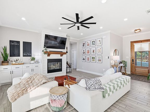 Spotless and move-in ready, this 4-bedroom, 2.5-bath home offers the perfect blend of modern farmhouse charm and thoughtful design. Built in 2020, every detail has been carefully curated—from the ceramic tile flooring and shaker-style cabinetry to the granite countertops and decorative gas fireplace with shiplap surround that anchors the living space with warmth and character. The kitchen is a true showpiece, featuring a classic subway tile backsplash, stainless steel appliances, and generous prep space that makes everyday cooking feel elevated. The split-bedroom layout ensures privacy, with secondary bedrooms tucked away and a spacious primary suite that feels like a retreat. The ensuite bath includes a walk-in closet and a luxurious walk-in shower that’s truly spa-worthy—designed to impress with its size, finishes, and natural light. Step outside to a professionally landscaped backyard that’s as functional as it is beautiful. The saltwater pool with auto-fill and drain system offers low-maintenance luxury and year-round enjoyment. Whether hosting summer gatherings or enjoying quiet evenings under the stars, this outdoor space delivers. Situated on a spacious corner lot near the end of a quiet cul-de-sac, the home offers both curb appeal and a sense of privacy rarely found. Additional highlights include energy-efficient features, a two-car garage, and convenient access to schools, shopping, and dining. This home checks every box—comfort, style, location, and livability—with nothing left to do but move in and enjoy.