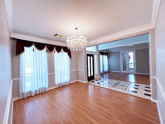 This beautiful 5 BR/4 BA home with optional 5th bedroom as a study room, has been completely remodeled and upgraded few years ago. It sits on the oversized premium lot and wonderful PRIVATE back yard with all neighbors facing away. It features formal dining and study room, a gourmet kitchen with custom island and breakfast area. Sleek granite and marble countertops throughout the home. Chandeliers in the foyer, dining and family room. Custom shoe storage. The 2-story high ceiling family room feathers custom built-ins entertainment center with pre-wired 11 speakers system and fireplace, a wall of windows overlooking the private backyard and paved patio. Generous first-floor master bedroom with sitting area and dual vanities, walk-in closet. Upstairs large game room. Sizable backyard offers opportunities for the addition play area. Sprinkler system, detached 3 car garage. Security cameras around the property. Washer and dryer in the laundry room included. 75" TV in the upstairs game room also included. Enjoy resort-like living in this gated community with buses available to Awty, British School & Village schools.