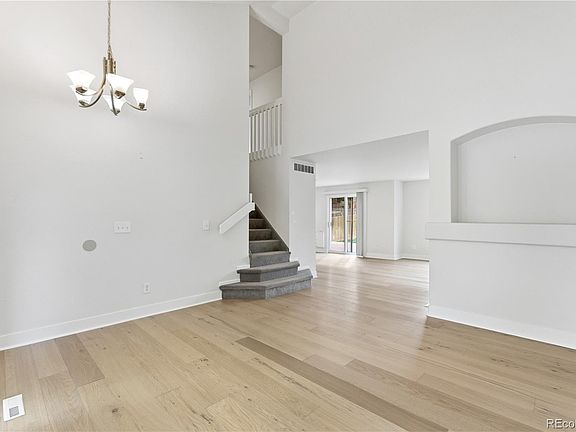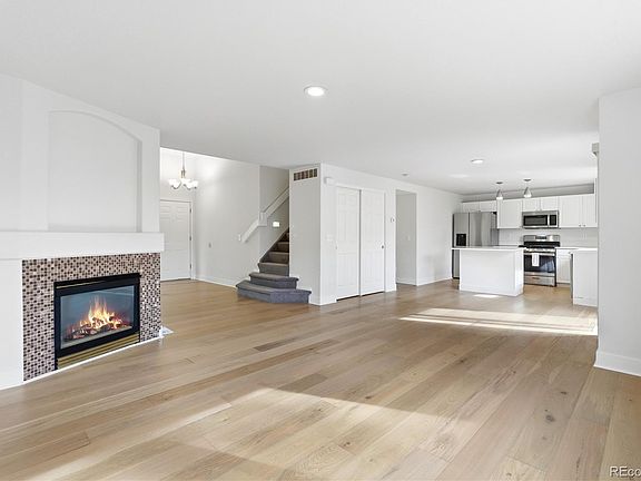 Welcome to this beautifully updated two-story home in the desirable Saddle Rock Ridge community. Bright and open with vaulted ceilings and modern finishes, this home offers the perfect blend of comfort and functionality. The main level features LVP flooring throughout, creating a seamless flow from the spacious living area into the inviting family room, where a cozy fireplace adds warmth and charm. The dining area connects the family room and kitchen, with sliding doors leading out to the private backyard and patio—ideal for entertaining or relaxing outdoors. The kitchen is designed for both everyday living and hosting, featuring sleek quartz countertops, stainless steel appliances, and a generous island for meal prep or casual dining. A convenient powder room and laundry room complete the main floor. Upstairs, the primary suite offers a bright and spacious layout with an en suite five-piece bathroom that includes a soaking tub, separate shower, dual sinks, and quartz countertops. A large walk-in closet provides ample storage and completes the space. Three additional bedrooms and another full bathroom provide plenty of space for family, guests, or a home office. The unfinished basement is ready for your personal touch—whether you envision a gym, rec room, or additional storage. The private backyard features a spacious deck, perfect for outdoor dining or weekend gatherings. Surrounded by mature landscaping, it offers a comfortable space to relax and unwind. Conveniently located near parks, trails, shopping, and dining—with access to top-rated Cherry Creek schools—this home combines modern comfort with an ideal neighborhood setting.
