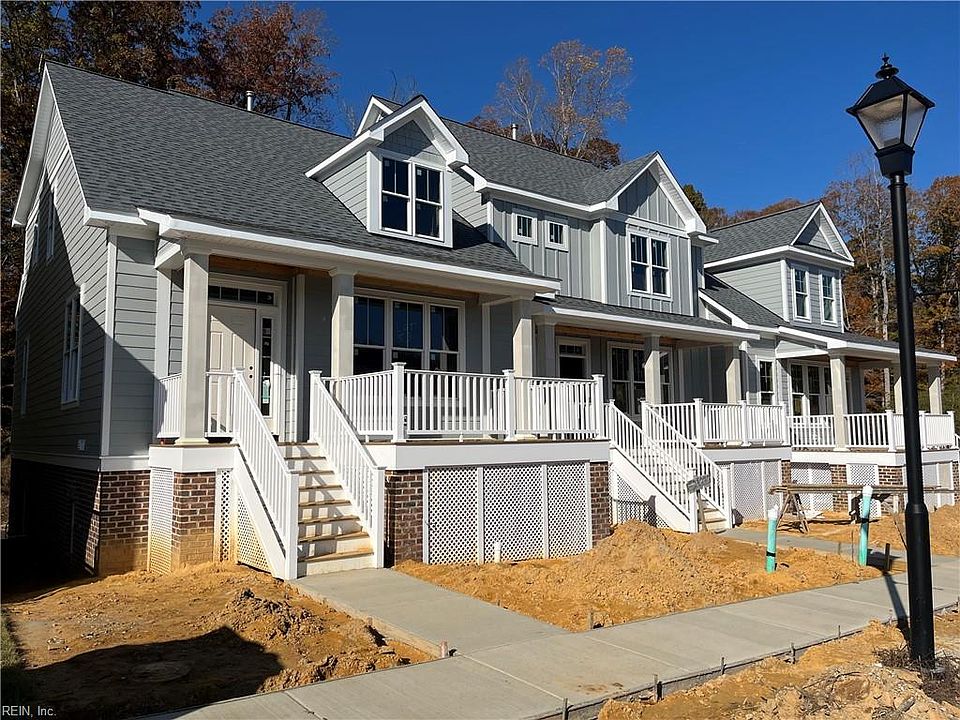 New construction in Shirley Park, New Town! The Barberry offers a stunning main living space with vaulted ceiling, 4 bedrooms with a huge owner's suite & double walk-in closet, attached two-car garage and a spacious front porch. Features include pre-finished Hardie siding, wide plank LVP flooring, granite counters at kitchen with 42" cabinets and stainless appliances, and tile flooring at baths with tile surround shower at main bath. Customize your colors and features! Trim package for windows and crown molding included, and garage walls/floors finished. Trails and sidewalks lead to all of the fun and convenience New Town offers, including close proximity to Trader Joe's and the New Town pool. Association includes lawn maintenance, pool and trash pick-up. Check out this wonderful opportunity for a new home designed for you in New Town, Williamsburg! Underway now with estimated February '26 completion.