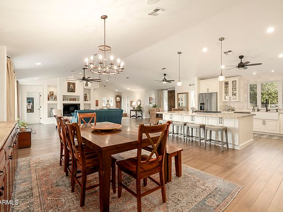 This beautiful Arcadia ranch home is in the highly desirable Arcadia Osborn neighborhood within walking distance of Arcadia Park, Ingleside Middle School and Veritas Preparatory Academy. It is a short drive to Old Town Scottsdale and conveniently located near some of the best restaurants and shopping in Phoenix and Scottsdale. This gem offers 5 bedrooms, 3.5 bath plus a 560 SF Guest House with 1 bedroom/1 bath making this property a very rare offering. The Kitchen was meticulously updated 2021 by the current owner and features an oversized island with beautiful leathered granite, a gas cooktop, and provides space for plenty of counter top seating; the updated custom cabinetry in this kitchen provides ample storage for anything you may need. The Kitchen opens up to the Dining Room, Living Room and Library nook where the total space is under high vaulted ceilings that makes the home feel open and spacious.