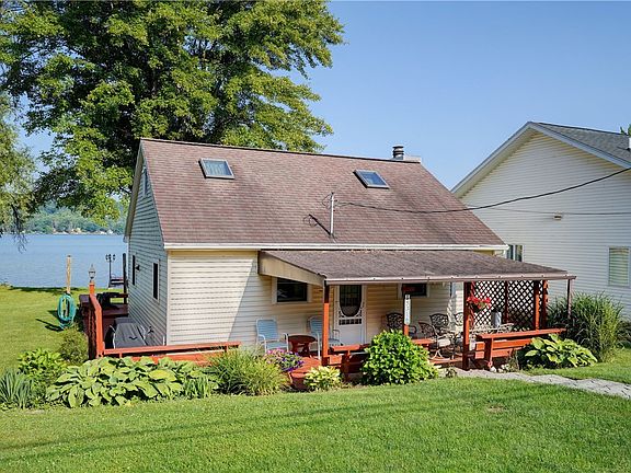 Absolutely delightful year 'round home on sunny Honeoye Lake. This special offering has three bedrooms bath and a half opne floor plan and a very level lot. There is a detached garage and gobs of extra parking for all those guests the lake attracts!