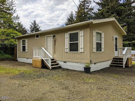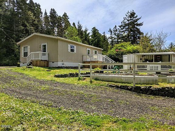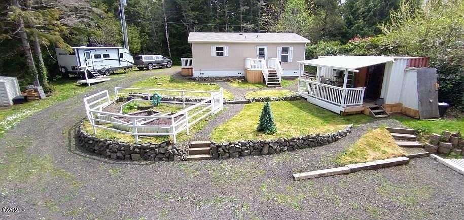 A Cottage Style Home tucked away amongst A Forest Setting, sitting on .36 of an acre within a Very Short walk to public beach access with over 8 miles of unobstructed coastal beach line to play on. Home sits at 135' above sea level out of tsunami zone & flood zone. Large RV parking with full hookups. Very quiet dead end street. 3 Miles to Waldport, 5 Miles to Yachats.. great location. Home has a nice open floor plan with beautiful kitchen design large pantry.. Home lives large with high ceilings & spacious rooms. Listen to the Ocean Waves crashing while enjoying the landscaped yard & private fire pit next to old growth forest. Two storage containers craftily converted to shops with electric, 20 ft shop and 40ft shop with 9' high ceiling perfect for the hobbyist.