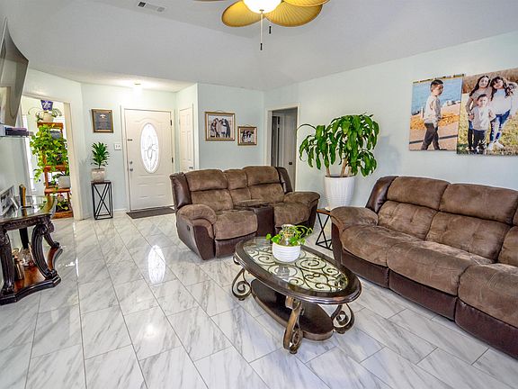Beautifully updated home w/3BR & 2BA on large cove lot. Open & inviting floor plan has been updated w/tile floor & fresh paint throughout. Gas log FP highlights family-sized great RM. It opens to spacious kitchen & adjoining breakfast area w/bay window. Kitchen is accented by SS Appliances & a tiled backsplash. Separate dining RM is ideal for holiday gatherings. Primary suite w/vaulted ceilings & luxury bath w/dual sinks & 2 walk-in closets. French doors to laundry RM. Fenced backyard w/patio.