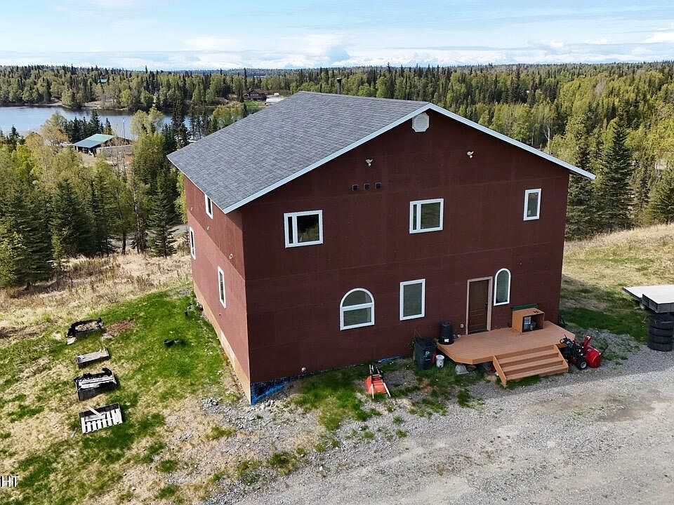 Easy owner financing is available! Perched on a hilltop with incredible views, this 3,200 SF 6 bdrm 3.5 bath custom home on 5 acres is ready for your finishing touches. The home is livable as is. Built with energy efficiency in mind, it features extra insulation and triple-pane windows. The property provides breathtaking views of the lake, distant volcanos and stunning sunsets and sunrises.