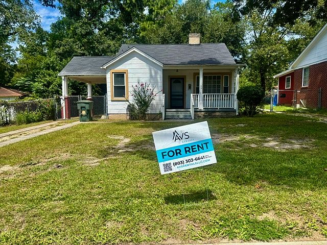 This single family home sits minutes to Downtown Cola. Covered front porch. Hardwood floors throughout. Living room features plenty of natural light and a cosmetic fireplace. Eat in kitchen has brand new granite countertops, fridge, stove and access to the driveway, attached carport, and backyard. Two roomy bedrooms with hardwoods and ample closet space. In the hall there is additional storage and access to the hall bathroom. Central HVAC. Spacious backyard is partially fenced. No pets and no inside smoking please. Available Now! Section 8 vouchers are accepted!