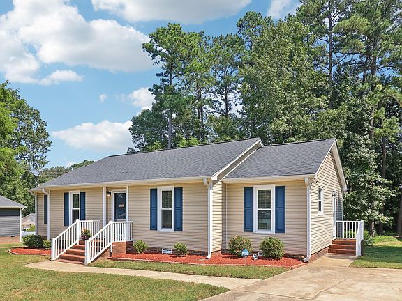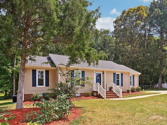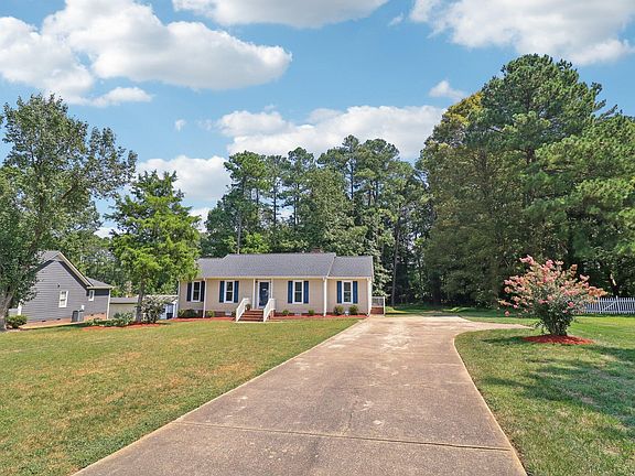 Welcome to your perfect oasis! This charming ranch-style home offers the ideal blend of comfort and convenience on over an acre of serene land with no HOA. With three spacious bedrooms and two well-appointed bathrooms, this home is designed to accommodate your lifestyle effortlessly! Step inside to discover a generous living room featuring a cozy wood-burning fireplace. The kitchen features granite countertops and sleek stainless steel appliances, complemented by a formal dining room for those special gatherings and an additional eat-in kitchen area for casual meals. The entire home boasts stylish, easy-to-maintain and recently installed luxury LVP flooring—no carpet here! Enjoy the private back deck that provides a tranquil retreat, overlooking a lush, wooded backyard ideal for outdoor activities and peaceful relaxation. Additional features include an extra storage shed for your convenience and proximity to Knightdale Station Park, just 7 minutes away. With nearby dining options and easy access to Highway 540, you'll enjoy both privacy and accessibility in this lovely home!